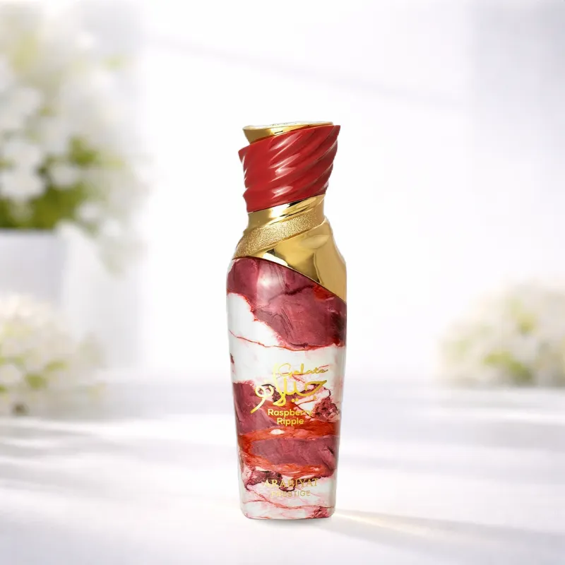 Raspberry Ripple by Arabiyat Prestige is a Floral Fruity Gourmand fragrance for women. This is a new fragrance. Raspberry Ripple was launched in 2025. The nose behind this fragrance is Julia Rodriguez. Top notes are Marshmallow, Blackcurrant, Strawberry and Freesia; middle notes are Raspberry, Magnolia and Cashmere Wood; base notes are Vanilla, Caramel and Moss.
