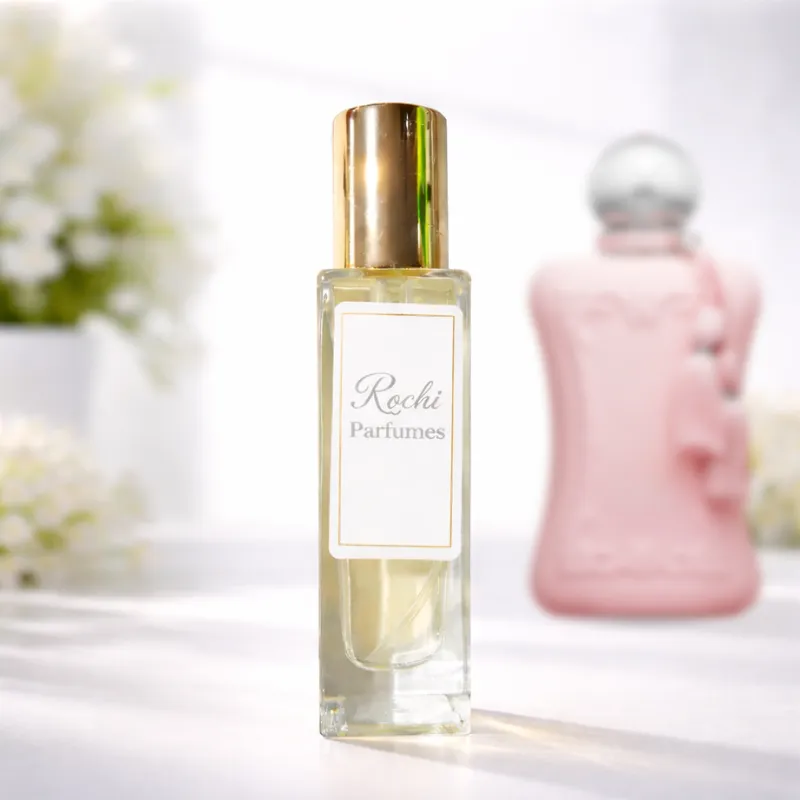 Delina Exclusif by Parfums de Marly is a Oriental fragrance for women. Delina Exclusif was launched in 2018. The nose behind this fragrance is Quentin Bisch. Top notes are Litchi, Pear, Bergamot, Pink Pepper and Grapefruit; middle notes are Turkish Rose, Agarwood (Oud) and Incense; base notes are Vanilla, Amber, Woody Notes, Musk, Vetiver and Evernyl.